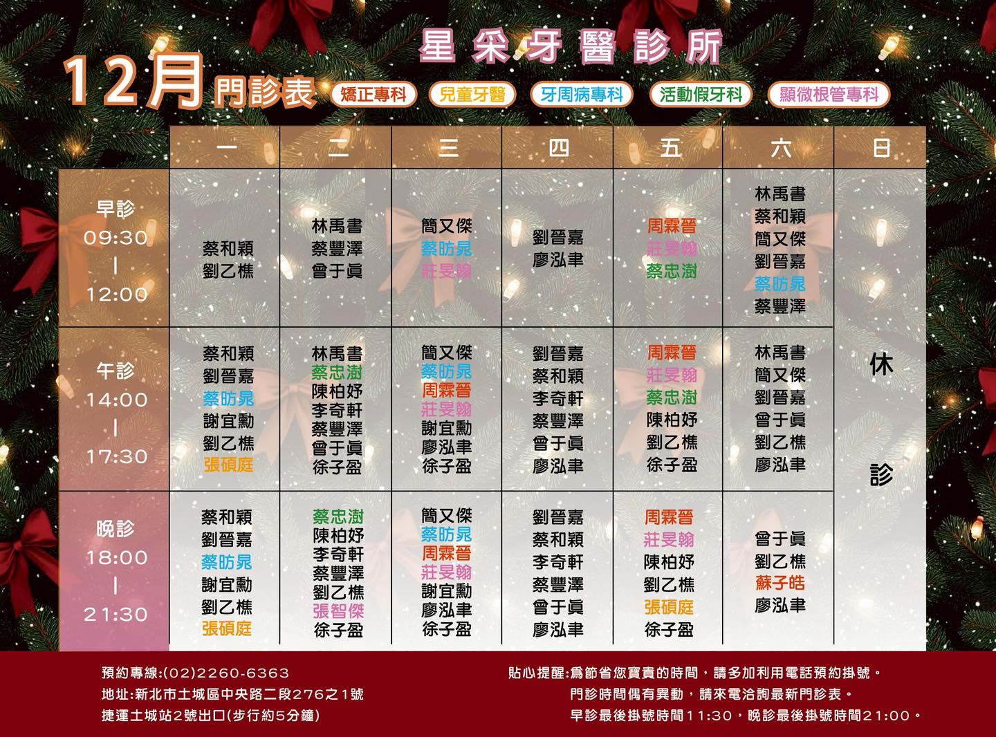 門診時間偶有異動,請來電洽詢。
