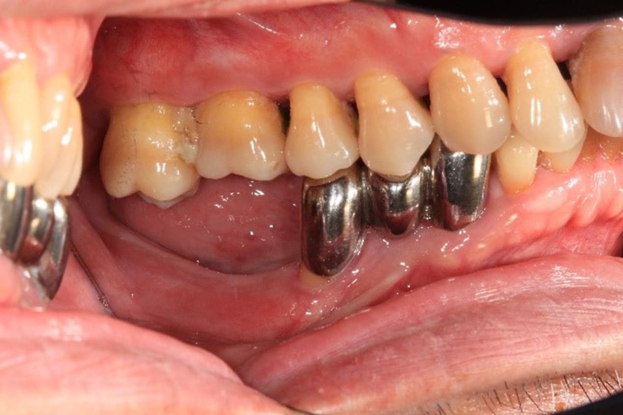 在早年瓷牙尚未普及的年代,多以全金屬牙做為假牙修復,堅固耐用,許多長輩口中金屬牙使用數十年仍然相當牢固