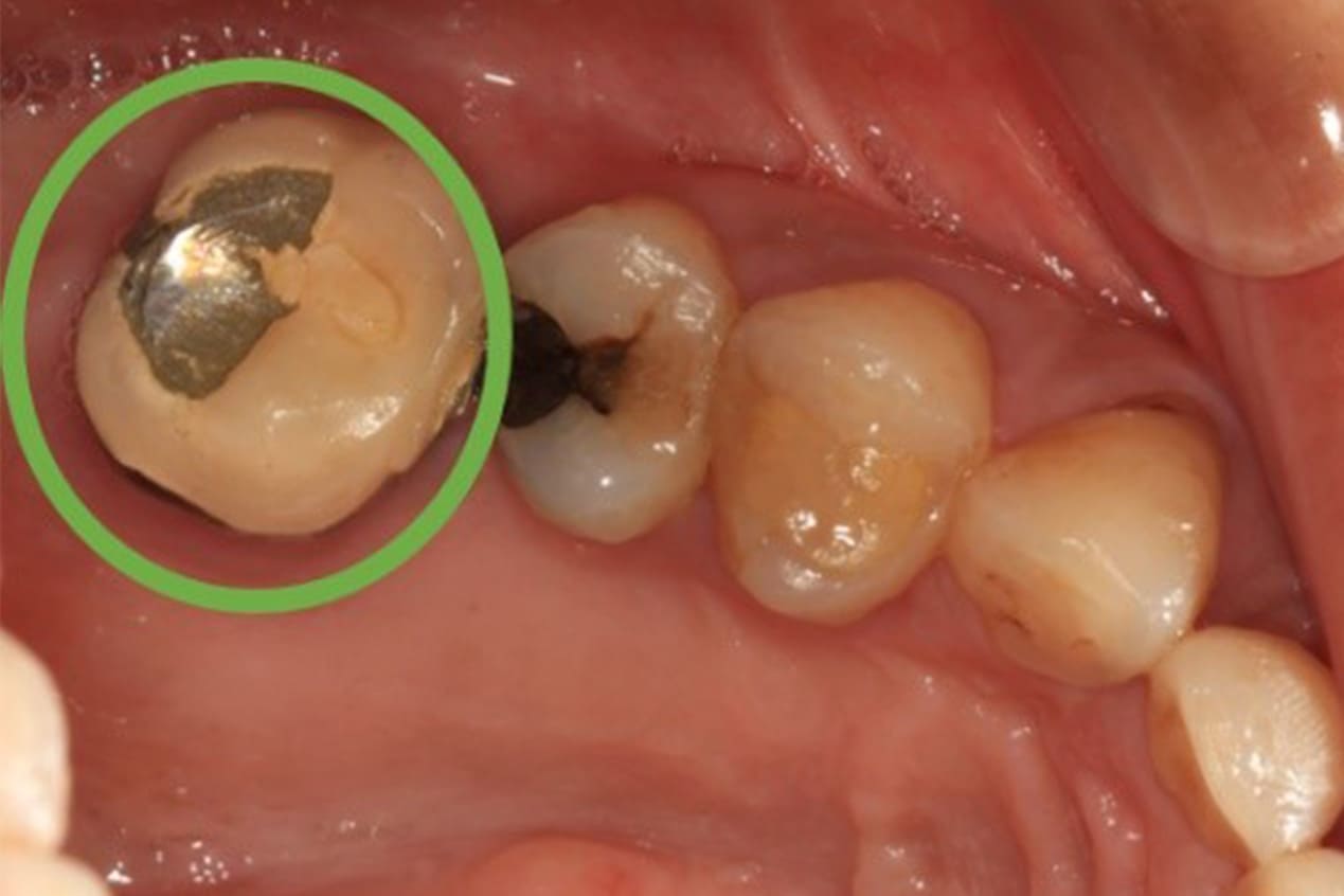 後牙金屬燒瓷牙,瓷粉崩裂